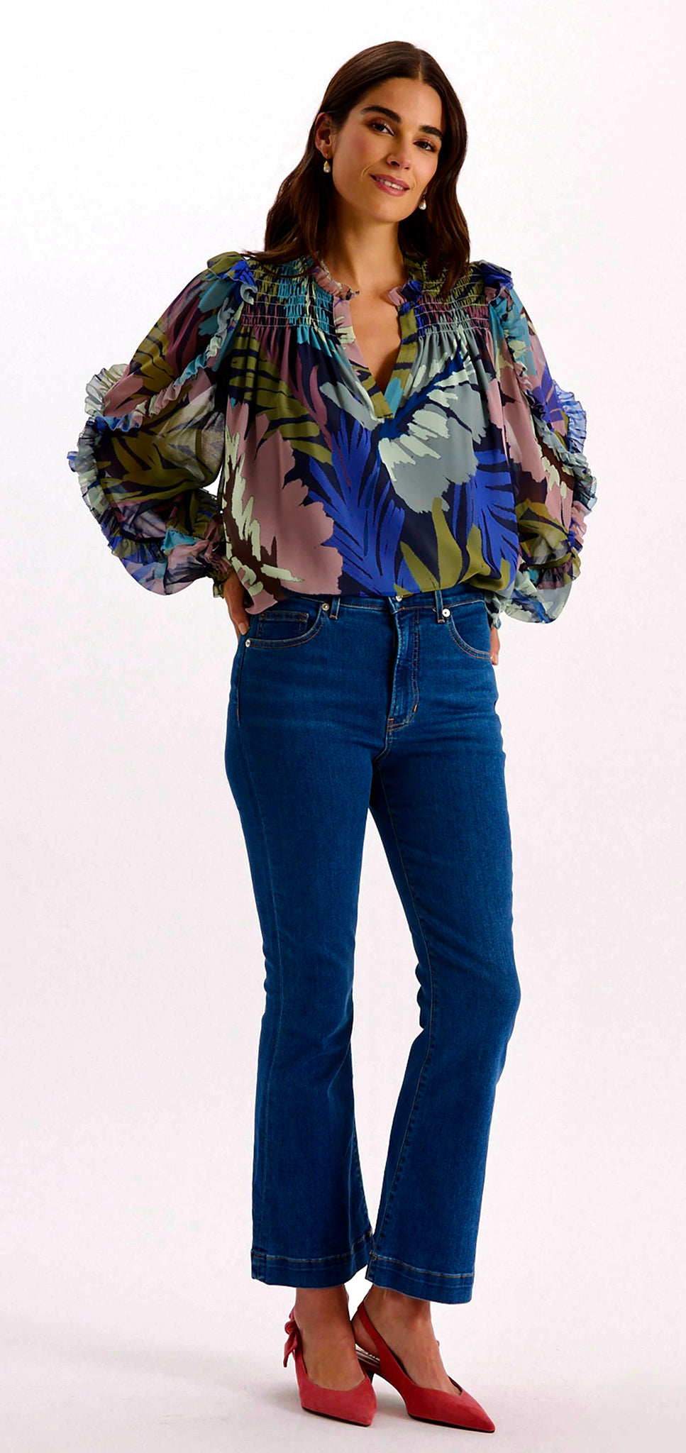 We absolutely love this amazing blouse by Tyler Boe. Gorgeous paired with their steel silk skirt.